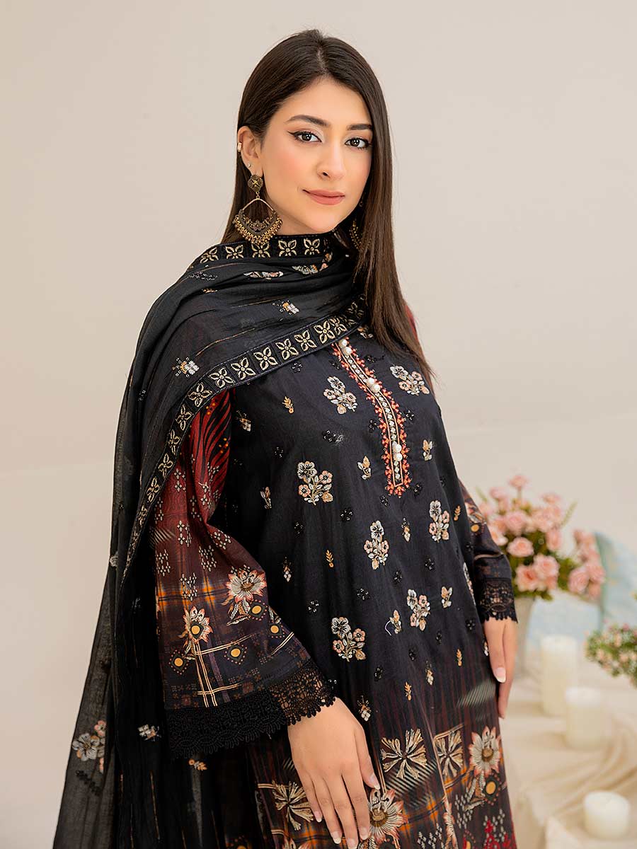• Digital Printed Fancy Voil Pallu Embroidered Dupatta